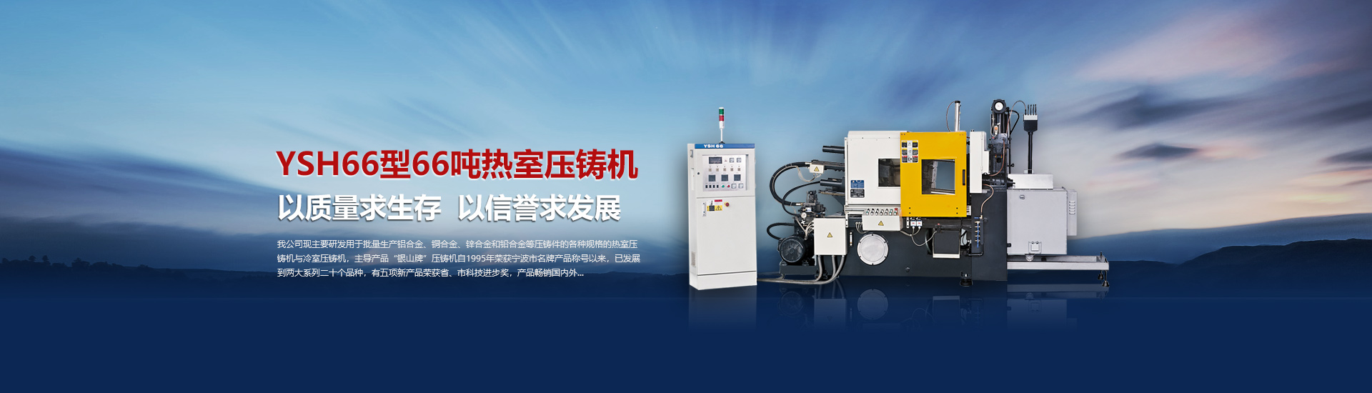 我司現(xiàn)主要研發(fā)用于批量加工生產(chǎn)鋁合金、銅合金、鋅合金和鉛合金等壓鑄件的各種型號規(guī)格的熱室/冷室壓鑄機,主導(dǎo)產(chǎn)品“銀山牌”壓鑄機自1995年榮獲寧波市名牌產(chǎn)品稱號以來,已發(fā)展到兩大系列二十個品種,有五項產(chǎn)品曾榮獲省、市科技進(jìn)步獎,產(chǎn)品暢銷國內(nèi)外。歷年來向用戶提供了8000余臺設(shè)備,為中國的壓鑄工業(yè)發(fā)展作出了重要的貢獻(xiàn),企業(yè)獲得了很高的信譽度。